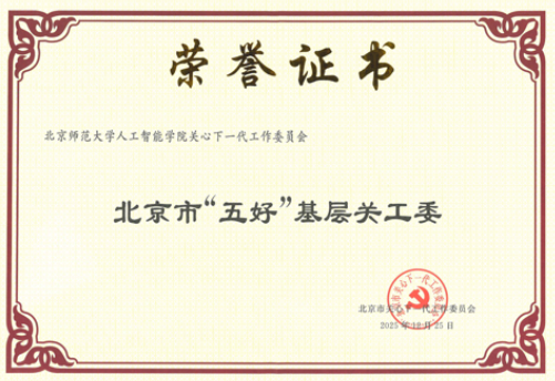 北京师范大学人工智能学院关工委荣获北京市“五好”基层关工委称号。