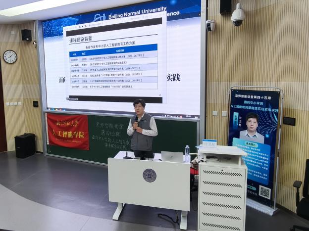 2025年3月25日,北京师范大学人工智能学院第四十五期“京师智能讲堂”在海淀校园电阶梯教室成功举办。我院副院长、教授、博士生导师、教育部智能技术与教育应用工程研究中心副主任计卫星担任主讲嘉宾,以“面向中小学的人工智能教育课程体系探索与实践”为题开展报告。本次报告联动学校校友会、学院校友联络人,吸引了我校校友、在校师范生、有志于从教的各学科学生、附属学校等一线教师线上线下共两百余人参会,线上线下氛围浓厚。
