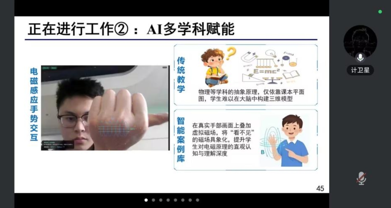 讲座中,计卫星教授进一步分享了该团队的多项创新实践成果,包括“师承万象”基础教育大模型、“北极星”大模型评测场、《人工智能赋能基础教育应用》蓝皮书以及“万象智搜”智能备课资源检索系统,充分展示了团队在推动人工智能与教育深度融合方面的持续探索与努力。