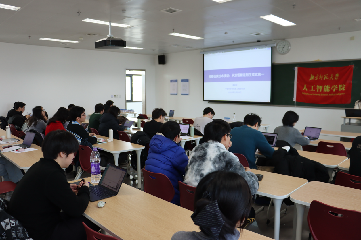2026年1月9日下午,北京师范大学人工智能学院在昌平校园2号楼成功举办智能学术沙龙第四十六期。本次沙龙邀请到中国科学院信息工程研究所副研究员李明明,为师生带来题为“搜推检索技术演进:从双塔精进到生成式统一”的专题报告。活动由人工智能学院朱倩男老师主持,吸引了来自不同专业的百余名师生参与,现场座无虚席,交流氛围热烈。