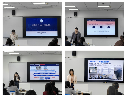 社会服务秘书袁铮介绍全年组织的各类赛事与培训项目,培训质量与影响力持续提升,取得良好的社会反响。科研与人事秘书巩真泽围绕人才引进、教师考核及科研项目展开汇报,协助多项国家级科研项目获批,顺利完成员工续聘与职称晋升相关工作。离退休与校友秘书叶青介绍校友信息、合同管理及退休教师慰问等工作,扎实推进院史资料搜集与校友联络体系建设。党建组织员、辅导员石红薇汇报了党建与学生工作的融合推进情况,组织多项实践类党建活动与文体赛事,所带班级荣获校级荣誉,切实提升学生思想政治教育实效。