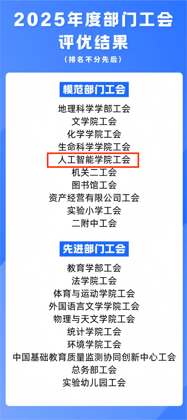 祝贺!人工智能学院工会荣获校“模范部门工会”