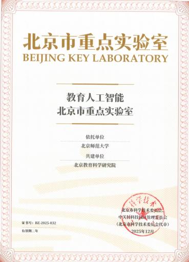 近日,北京市科学技术委员会、中关村科技园区管理委员会公布了北京市重点实验室认定名单。北京师范大学正式获批建设“教育人工智能”北京市重点实验室,该实验室依托北京师范大学人工智能学院,并联合北京教育科学研究院共同建设。
