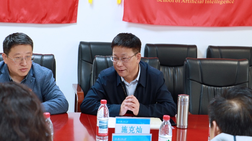 随后,双方结合学习教育部等五部门《“人工智能+教育”行动计划》开展交流研讨。人工智能学院院长黄华介绍了学院近年来相关工作情况。他表示,学院立足以技术发展赋能教育,将持续深入探索,为教育数字化转型提供有力支撑。与会教师围绕党建引领、学科交叉融合、人才培养和科研协同等内容展开深入交流。大家一致认为,双方学科特点突出、优势互补,应以高质量党建引领高质量发展,推动人工智能与教育深度融合,不断提升人才培养质量和服务国家战略能力。