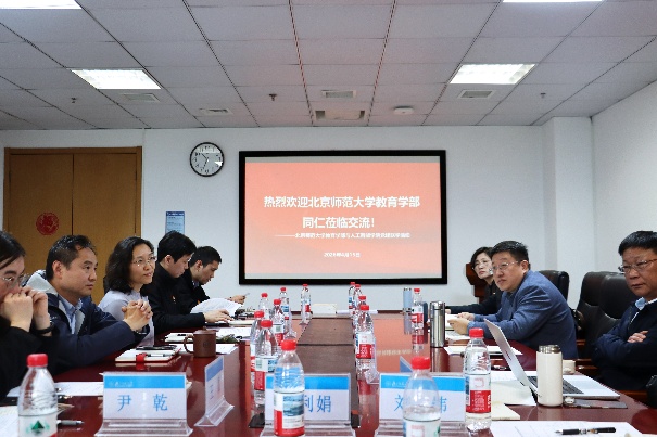 教育学部施书记一行先参观了人工智能学院在昌平校园G区的办学空间。双方再进行联学和座谈交流。党委书记廖英主持会议。