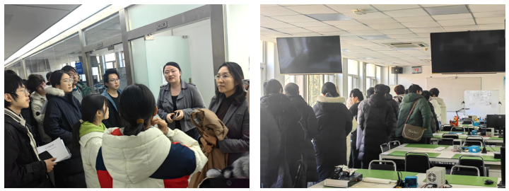 最后,为帮助同学们直观了解学院实体资源、发展历程与文化底蕴,廖英书记亲自带领大家参观电子楼和校史馆。从二楼的教学办公区、竞赛、计算机机房,到三楼的实验室、学工和行政办公区、生活指导室等,廖英书记详细介绍各区域的功能与特色,让同学们对学院的教学环境与资源配置有了更深入的认识。